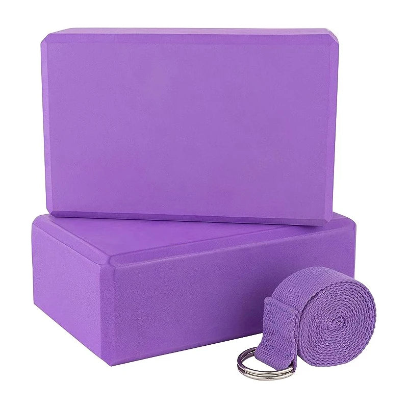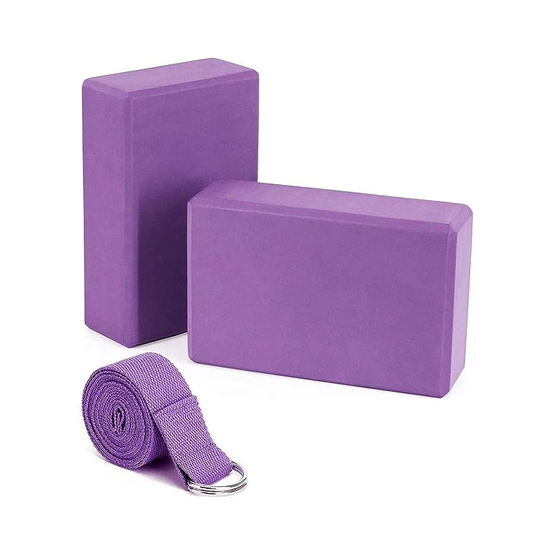 1 Pack Combo Set, 9" x 6" x 3" High Density EVA Foam Block Yoga Block 2 Pack and Metal D Ring Yoga Strap 1