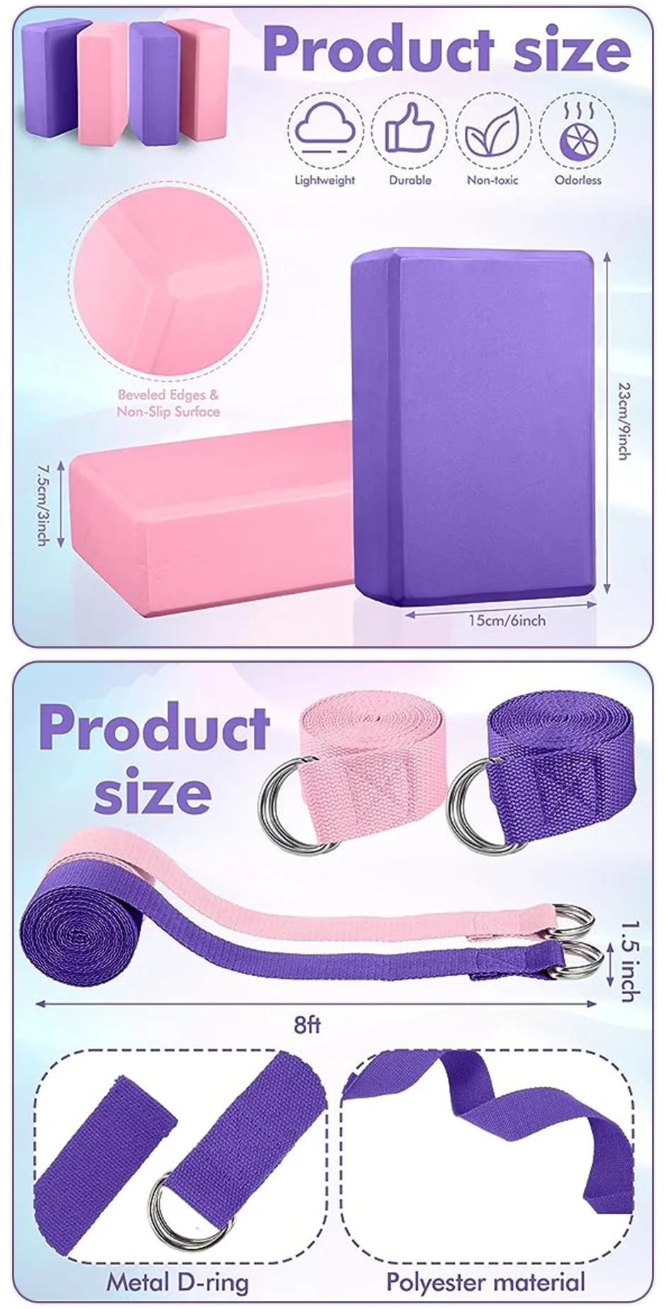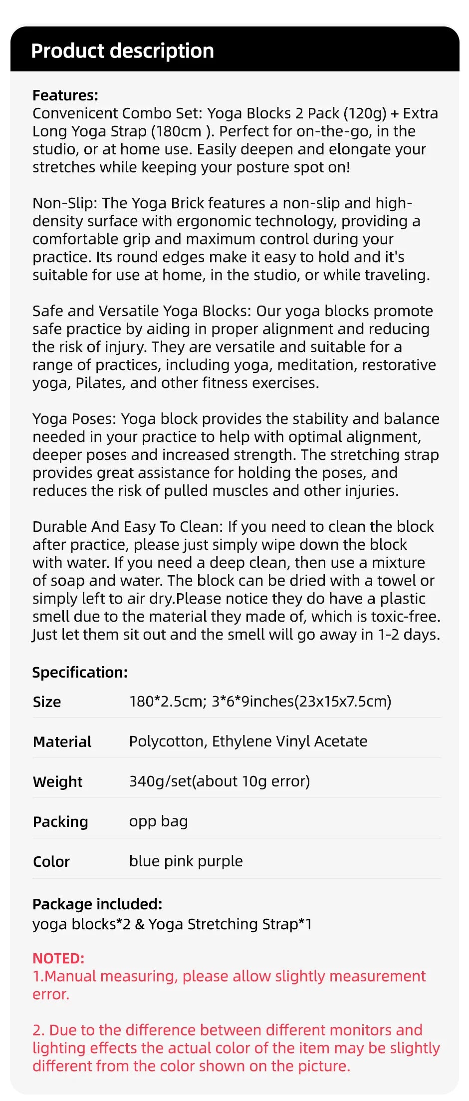 Package included yoga blocks*2 & Yoga Stretching Strap*1