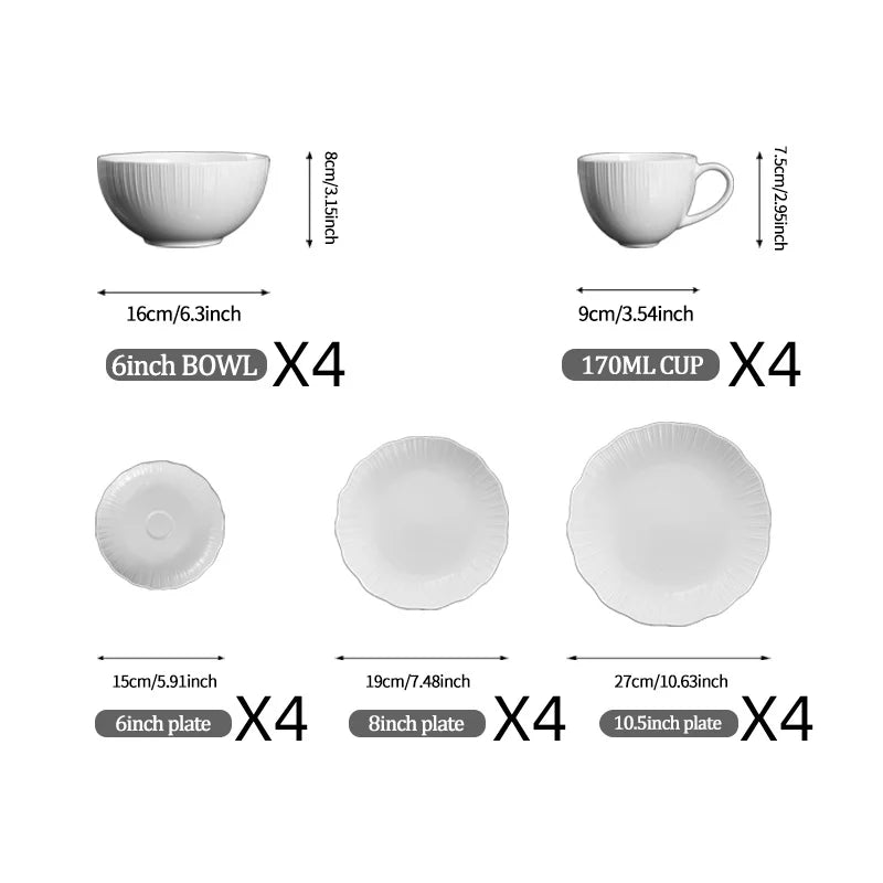12/20-Piece Porcelain Dinner Set Elegant White Ceramic Bowls and Plates