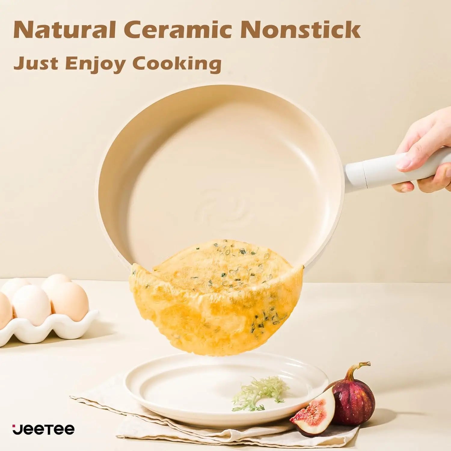 14Pcs Beige Ceramic Cookware Set Pots and Pans Set Nonstick