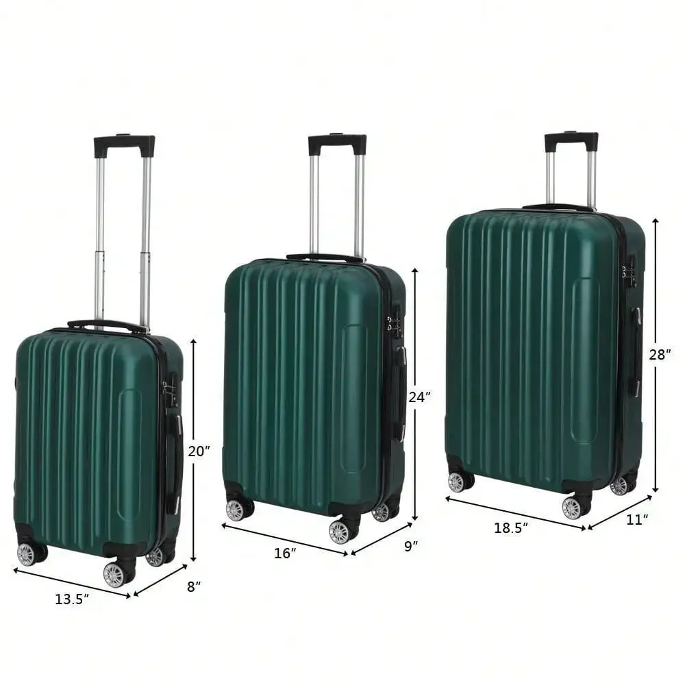 20" 24" 28" Luggage Travel Set ABS Trolley Hard Shell Suitcase w/TSA Lock Green