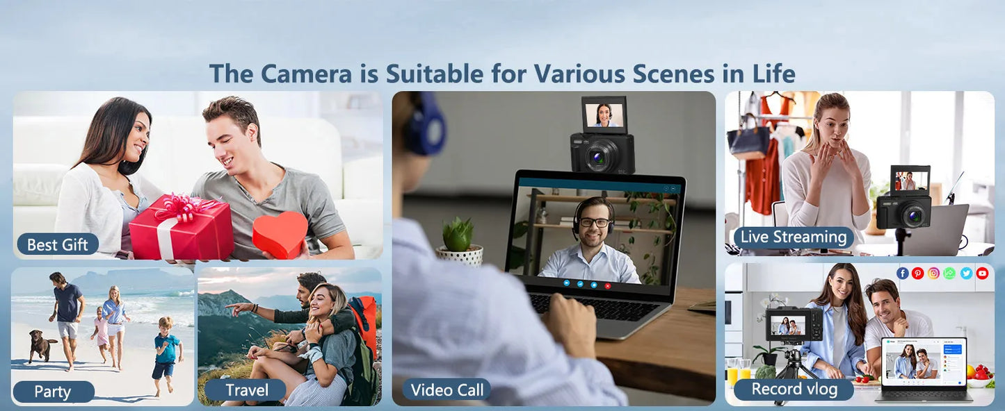 4K compact digital photography camera, 18x digital zoom,180ยฐ flip screen, WiFi webcam