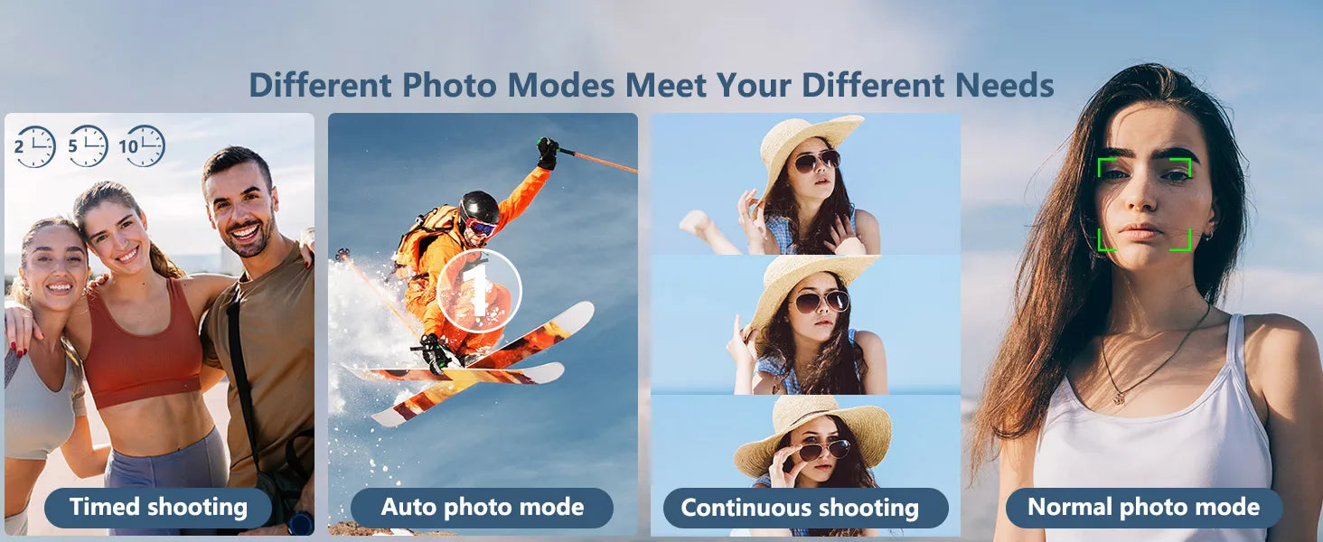 - 4 Photo Modes: Continuous Shooting, Timed Shooting, Auto Mode, Normal Mode.