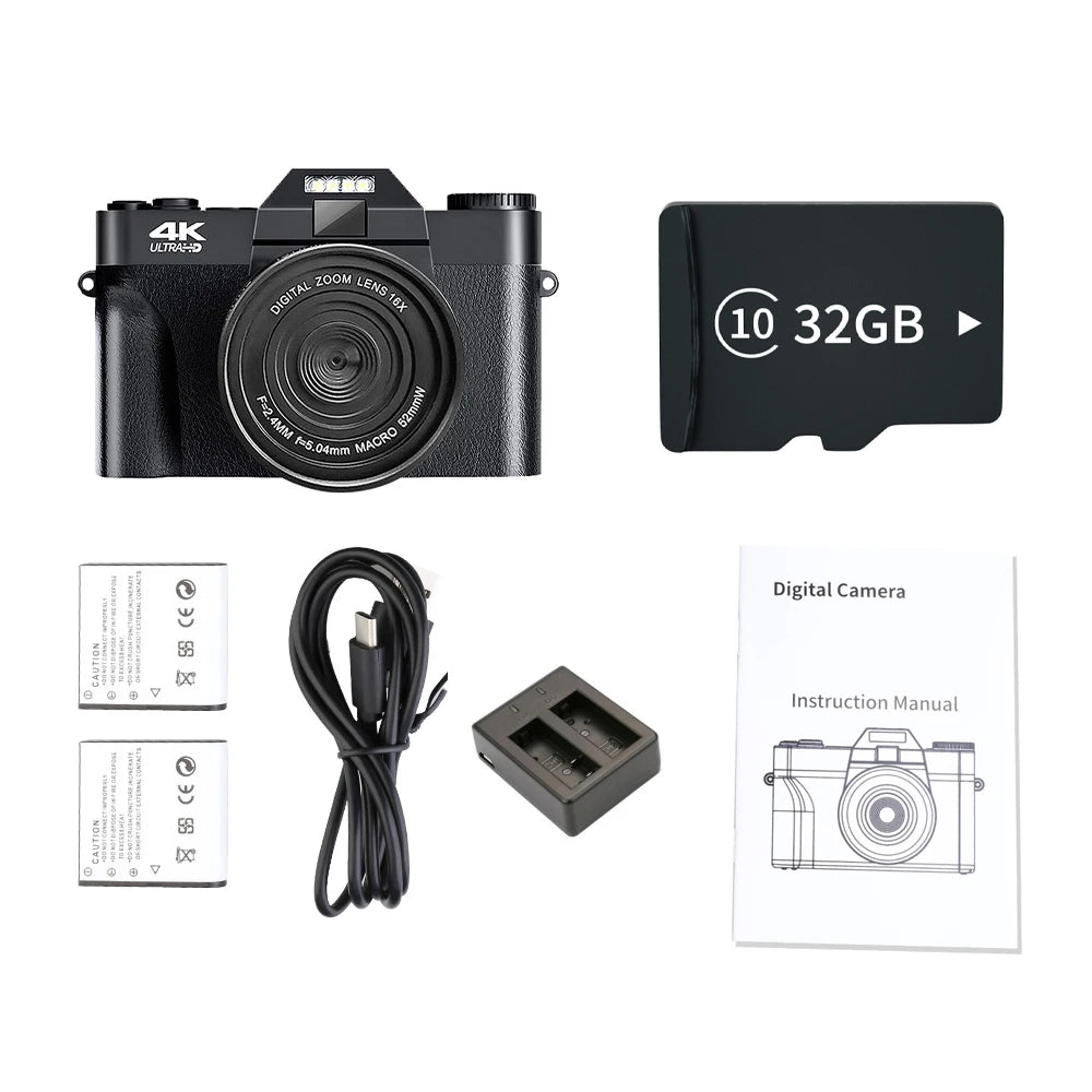 4K Digital Camera 48MP 16X Digital Zoom 3'' Flip Screen