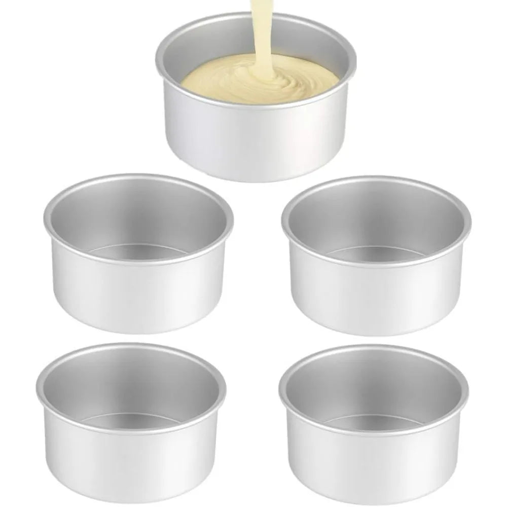 Elevate your baking experience with our 5 packets of 5 "X 2" round aluminum cake pans. Perfect for creating delightful mini cakes, pizzas, and egg cakes for family gatherings or special occasions, these pans are a must-have for every baking enthusiast. Crafted from high-quality aluminum, they ensure even heat distribution for perfectly baked treats every time.