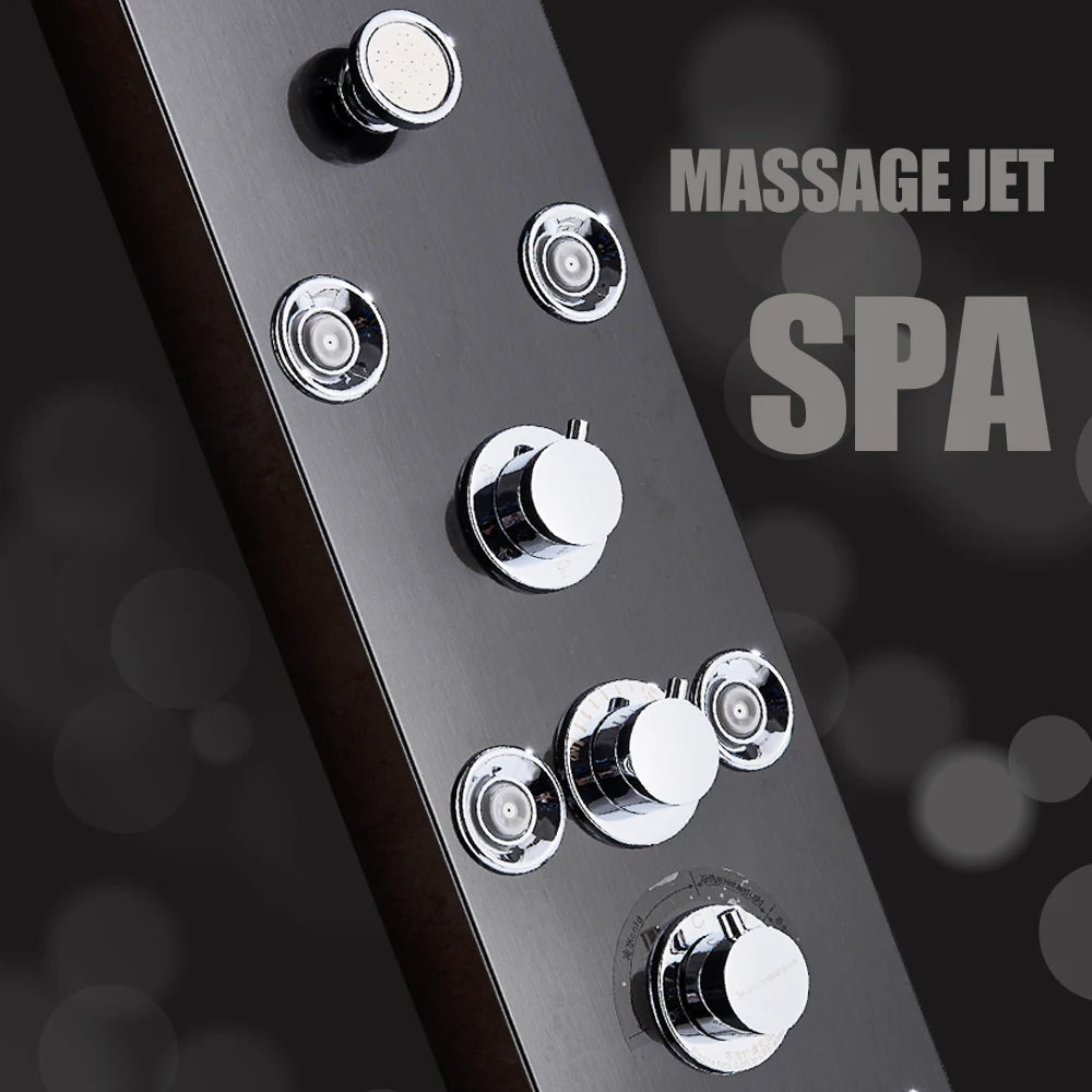Brushed Nickel Bathroom Shower Column Wall Mounted Black LED Shower Panel