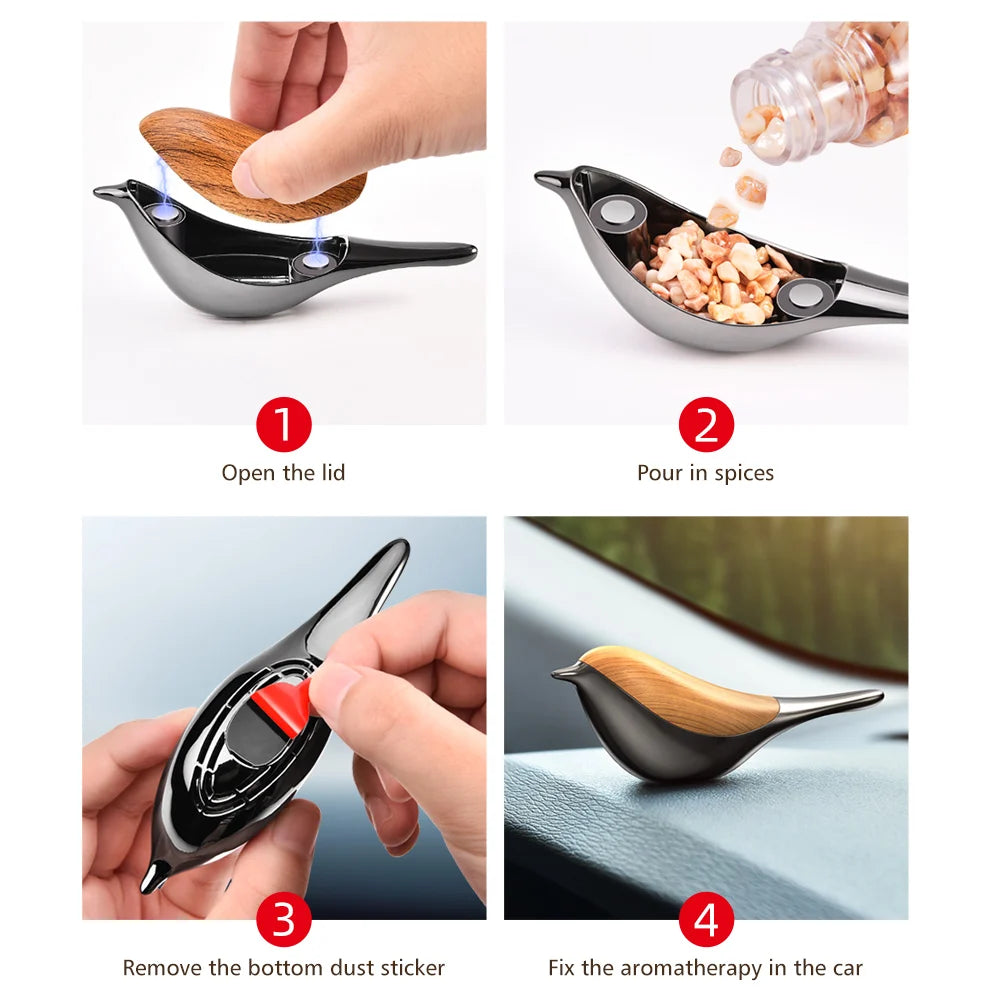 Car Air Freshener Lucky Bird Aromatherapy Diffuser Alloy Magnetic Cap Auto Interior Fragrance Air Purification Accessories