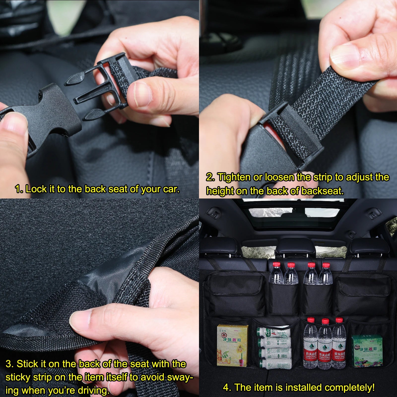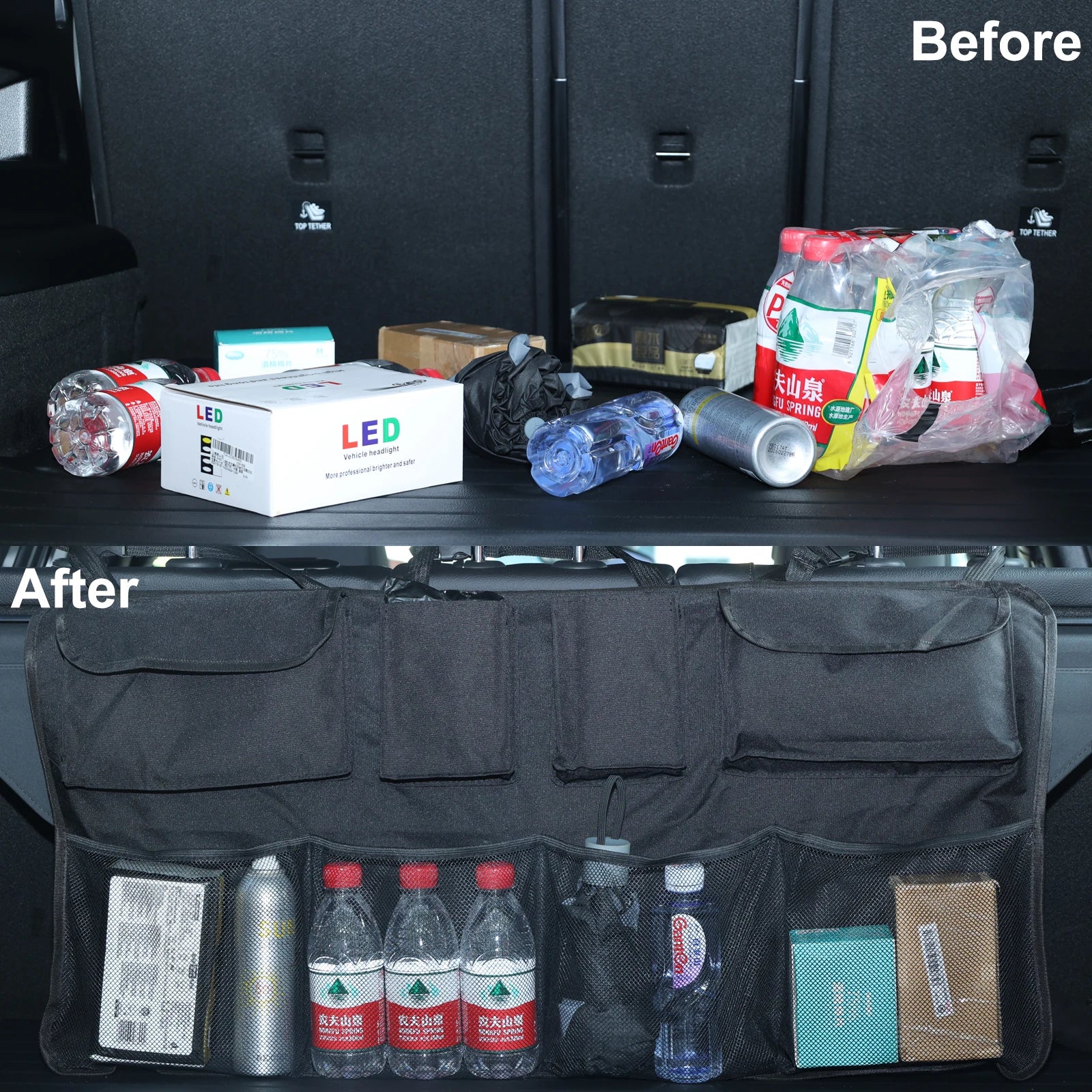 - 8 Convenient Storage Bags: Equipped with 4 oxford cloth bags and 4 mesh bags, it provides ample space for emergency supplies, tools, groceries, toys, and more—keeping your interior tidy and clutter-free.