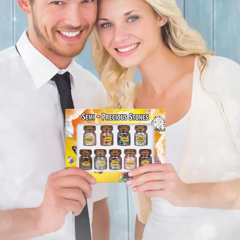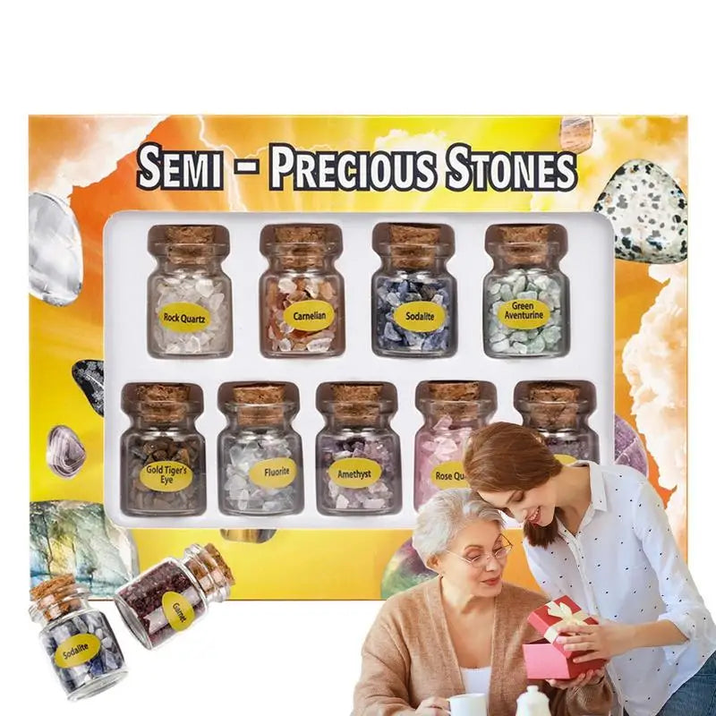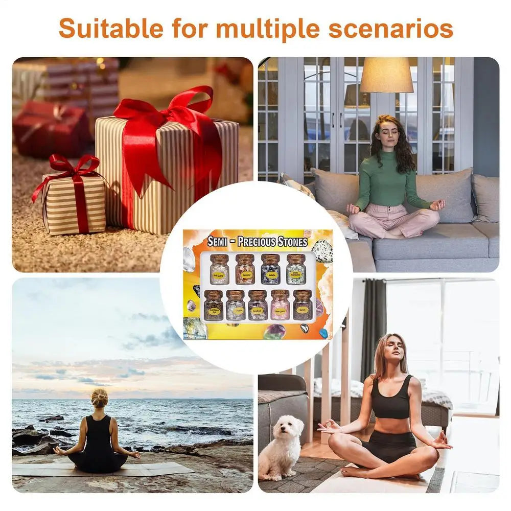 β π Assorted Gemstones β Each bottle contains different energy-infused crystals, perfect for meditation, chakra balancing, or decorative use.