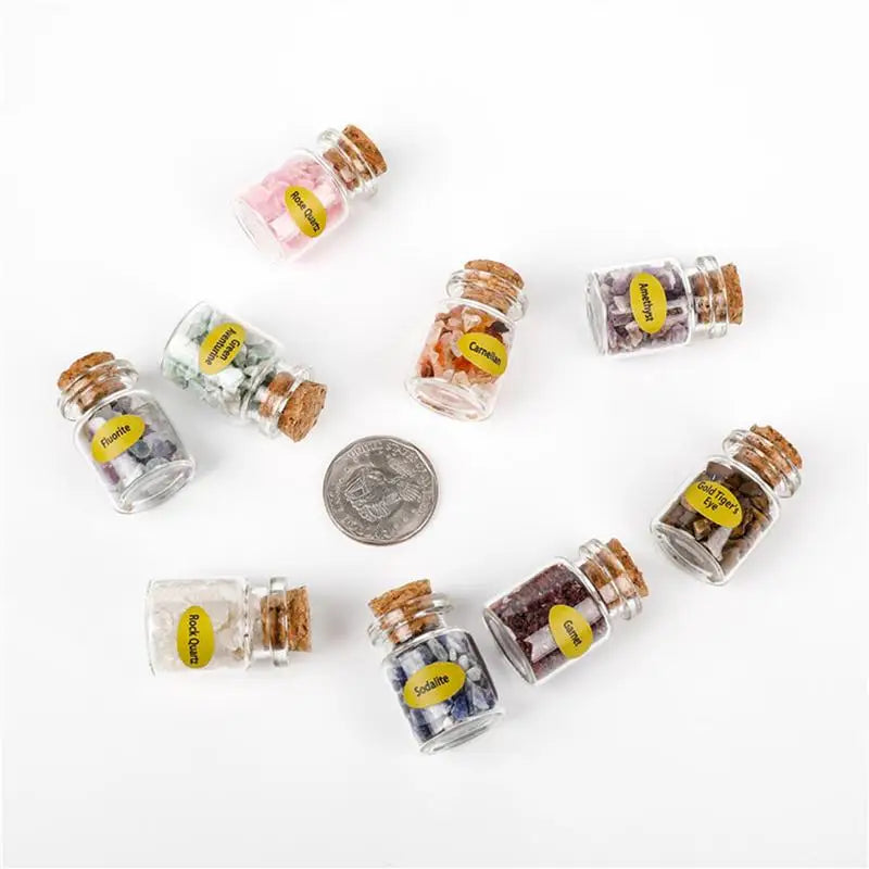 β π Assorted Gemstones β Each bottle contains different energy-infused crystals, perfect for meditation, chakra balancing, or decorative use.