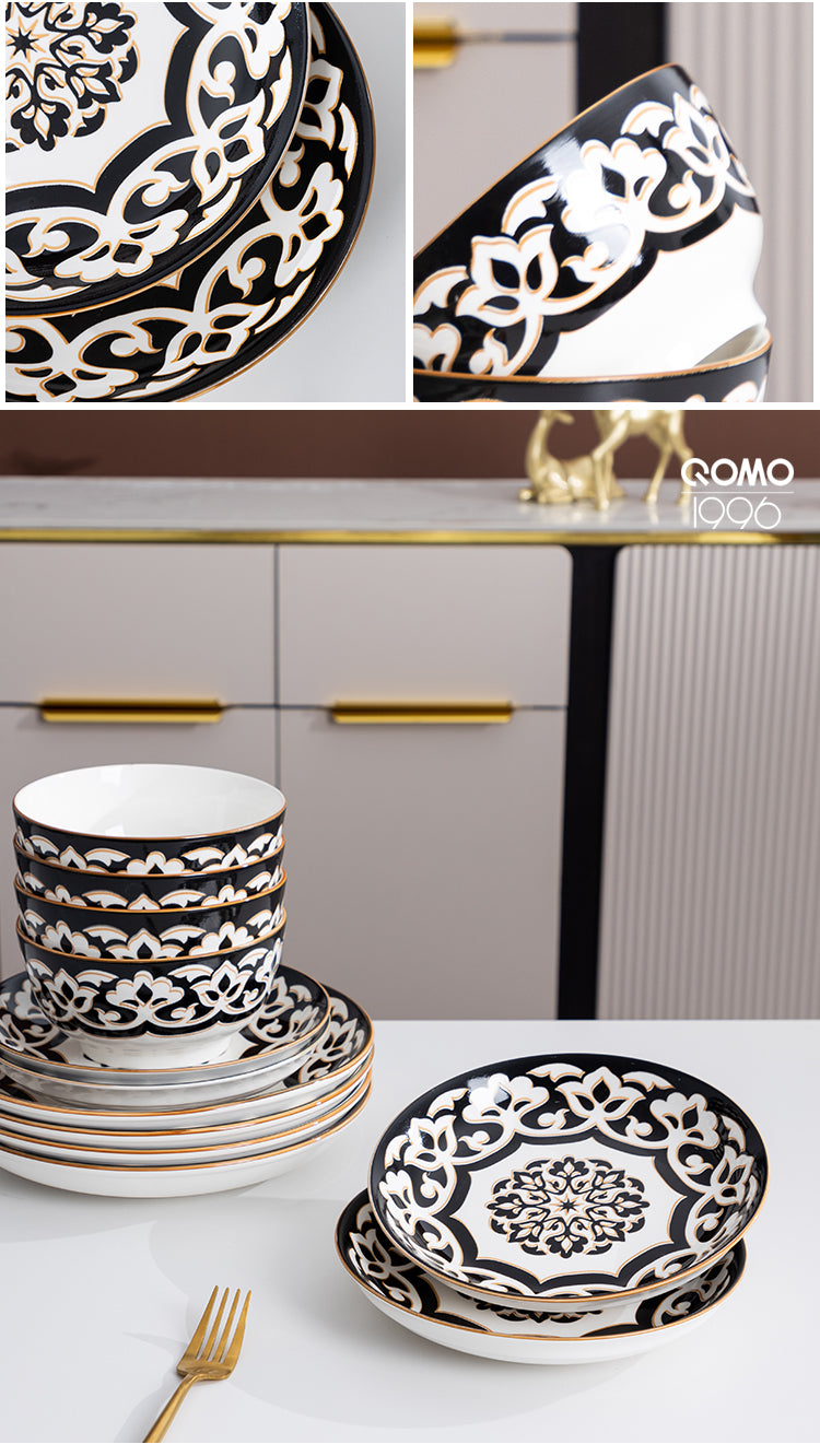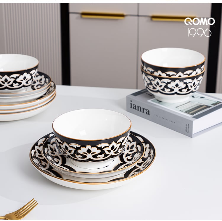 The rounded shape and vertical edge design add a modern flair, perfectly complementing any kitchen decor. Whether you're hosting a casual brunch or a formal dinner party, this Dinnerware Set for 4-8 will impress your guests and enhance your dining experience.