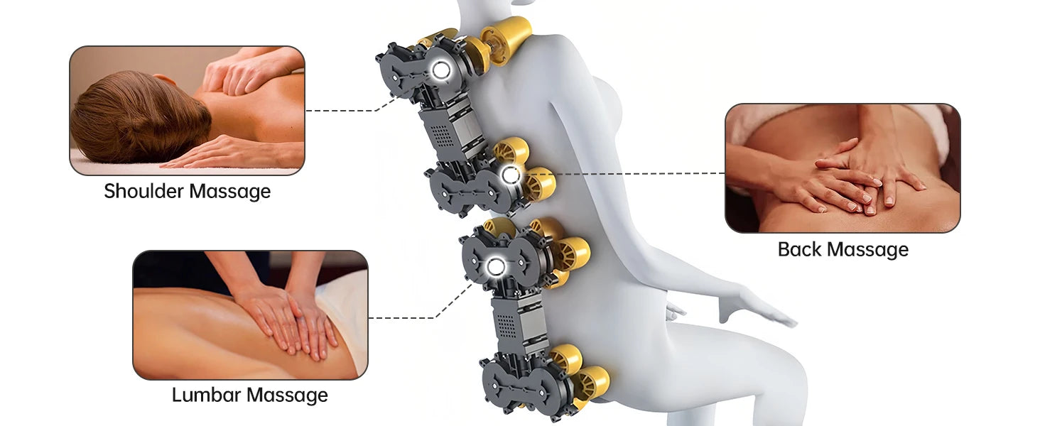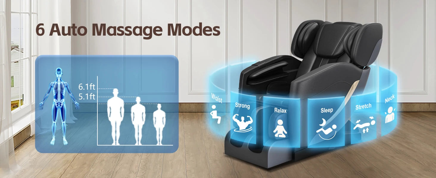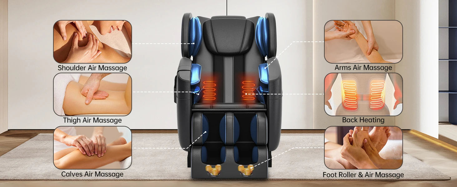 1 Full Body Airbag Squeeze 2 8 Fixed Shiatsu Rollers 3 6 Auto Massage Modes 4 Ideal Gift Choice