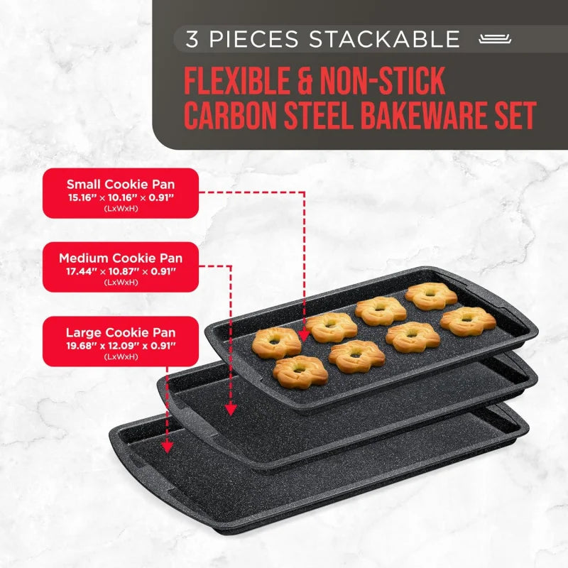 Gray Marble 3 Piece Set Cookie Sheet - Non-Stick, Stackable Baking Pans