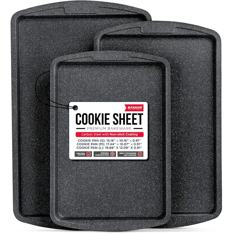 ✨ Why Every Baker Needs This Set NOW ✨ 🌟 Non-Stick Magic: Deluxe Gray marble ceramic coating for effortless release and perfect cookies every time. 🌟 Stackable & Space-Saving: Sleek design to save precious kitchen space. No more messy cabinets! 🌟 Built Tough: Commercial-grade carbon steel for even heat and long-lasting durability. 🌟 Versatility Galore: Safe for oven, fridge, and freezer. Endless possibilities for your culinary masterpieces! 🌟 Safe & Smart: PFOA, PFOS, and PTFE-free to keep your family safe. Dishwasher-friendly for easy cleanup!