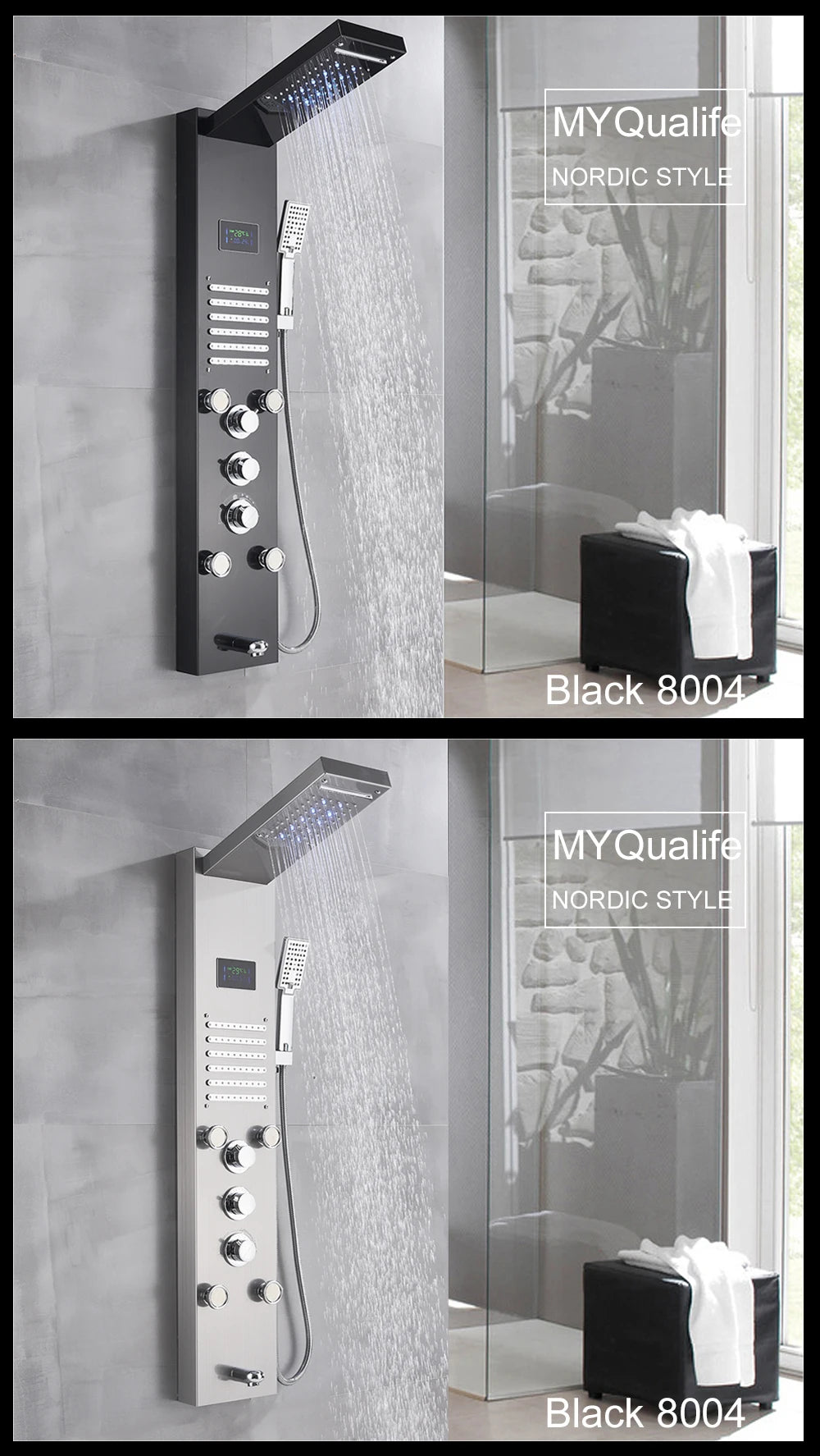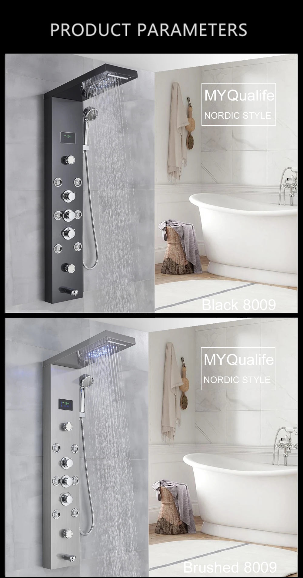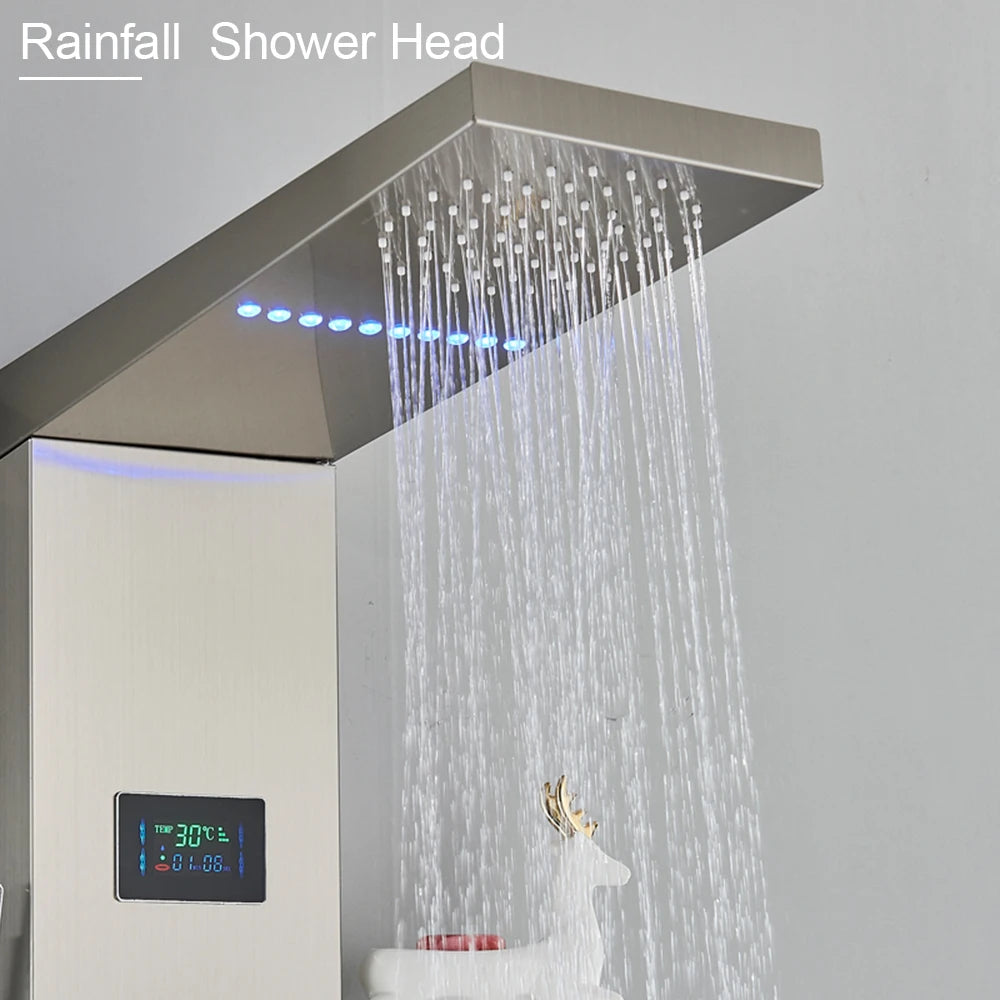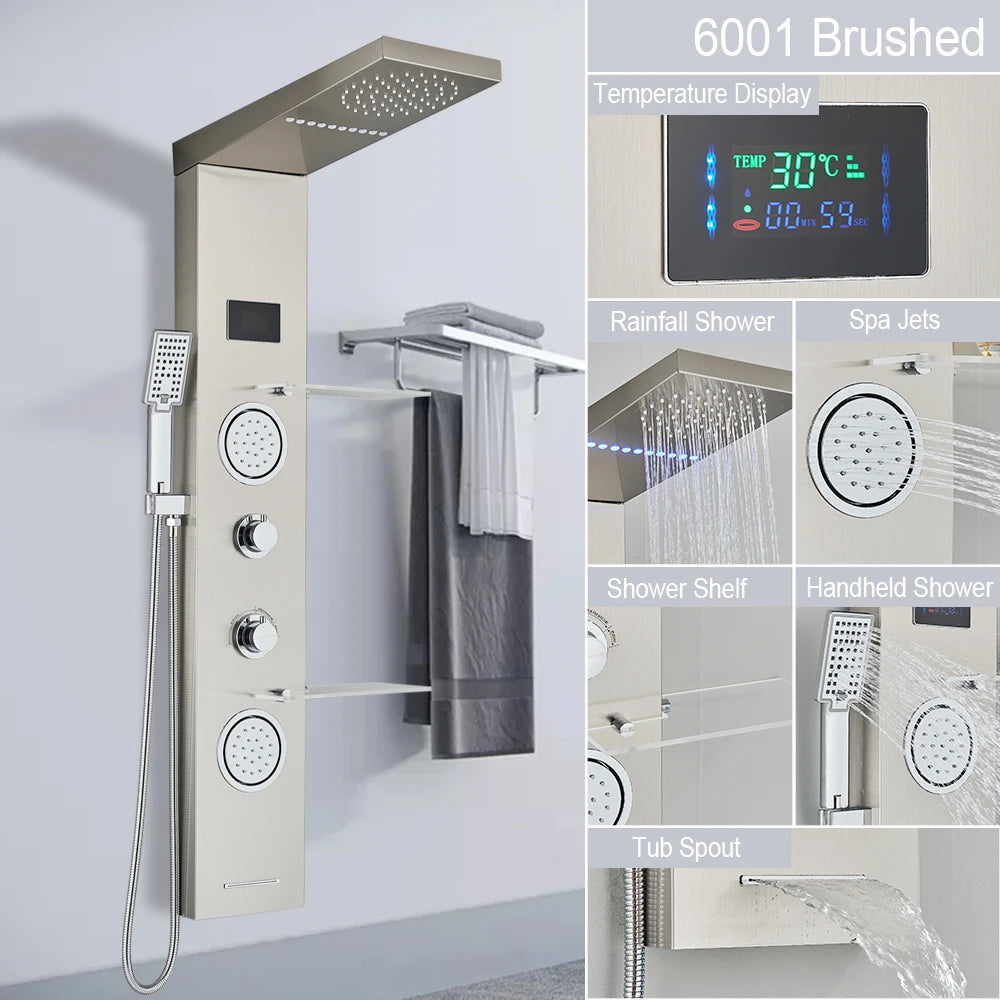 LED Light Shower Panel - Waterfall, Rain Digital Display Shower Faucet Set