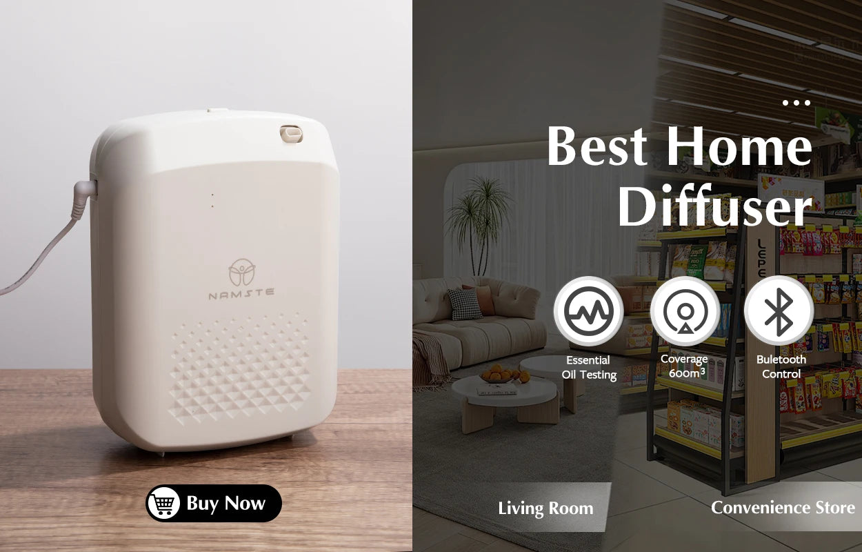 Whether used in hotels, spas, shopping malls, or at home, the NAMSTE Coverage 500m³ Bluetooth Diffuser elevates your environment with aromatic luxury. Experience the perfect combination of technology, style, and tranquility—order now to transform your space with soothing scents and enhanced ambiance.