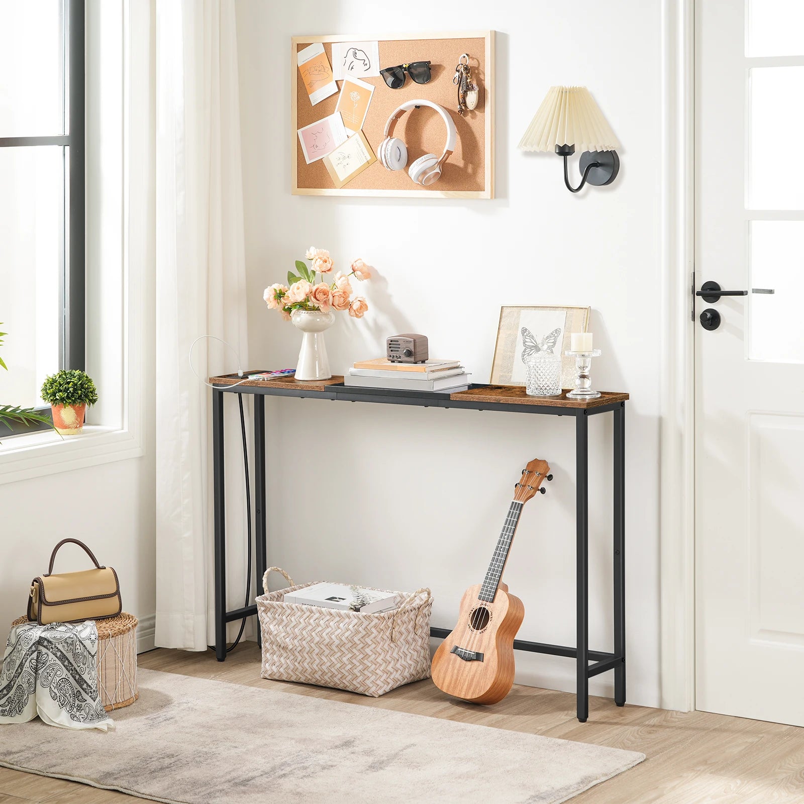 Elevate your living space with the Narrow Console Table with Power Outlets, a versatile 44.9-inch sofa table designed for style and functionality. This slim behind couch table is perfect for maximizing small areas, whether in your living room, entryway, or even a stairwell.