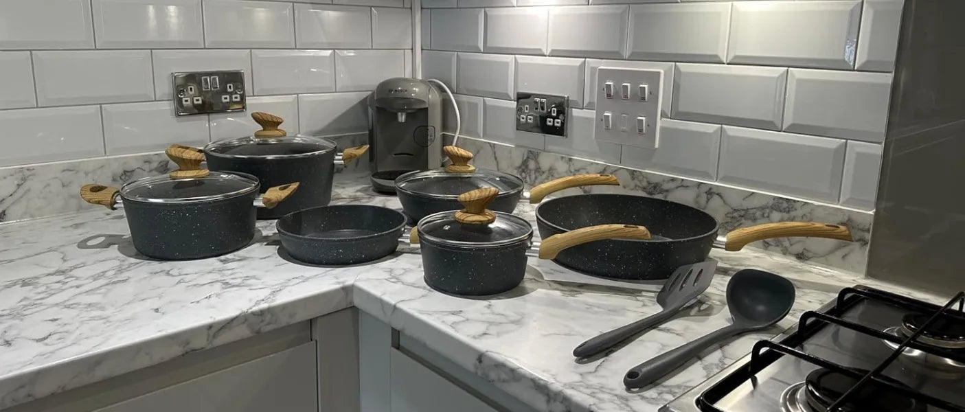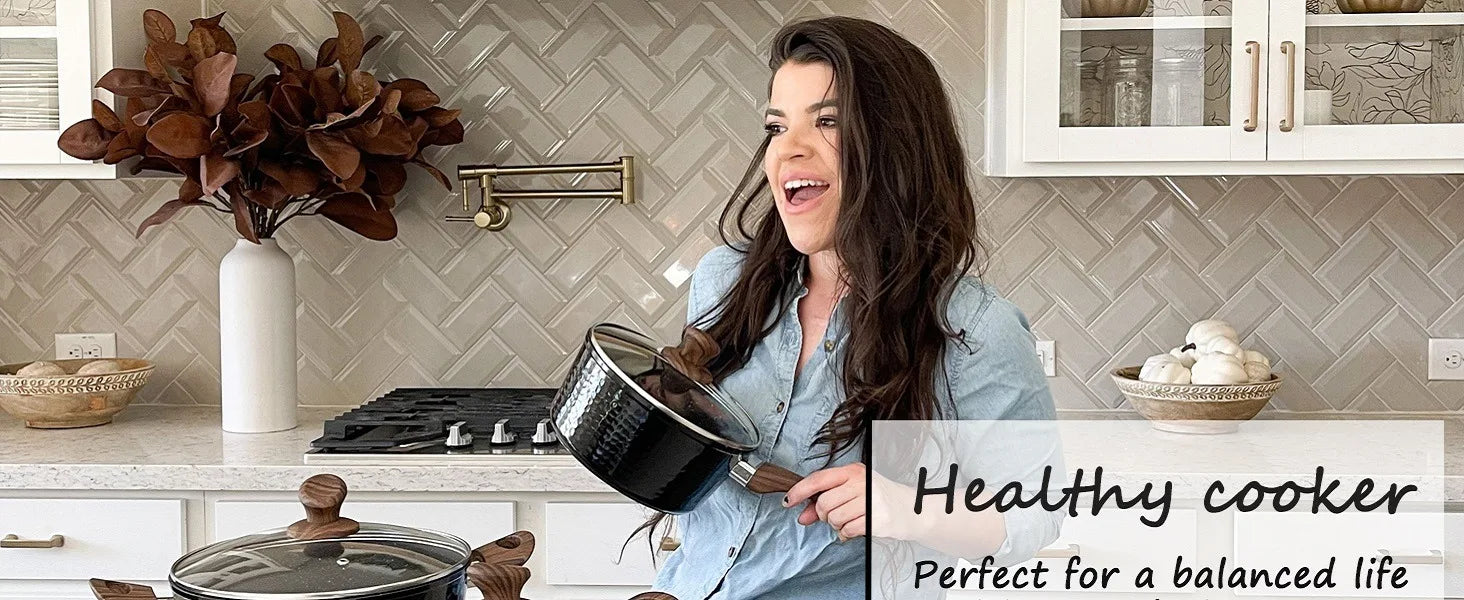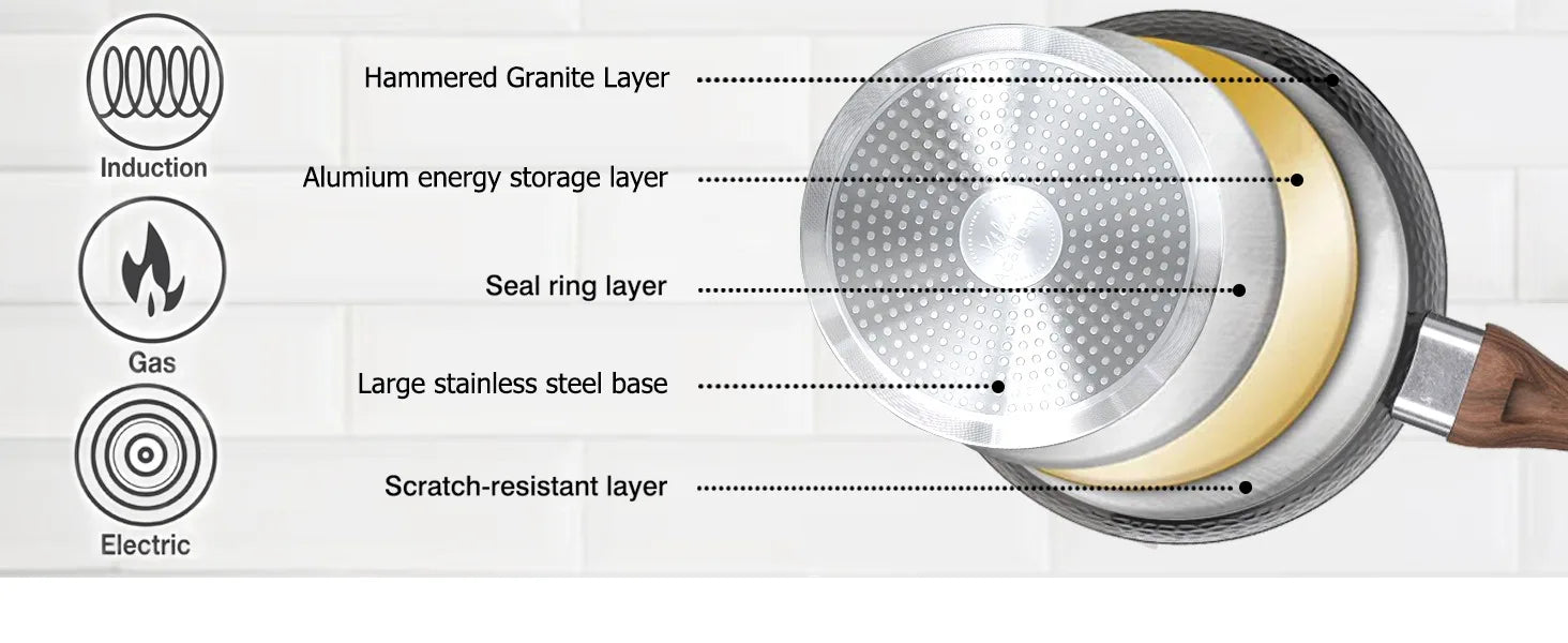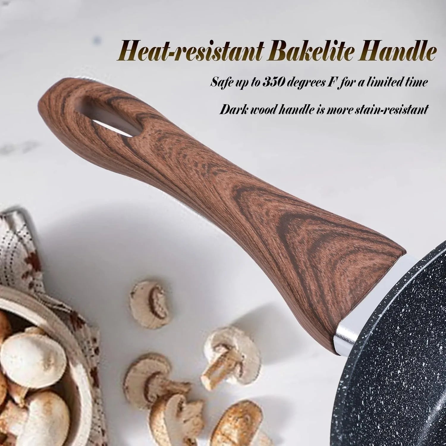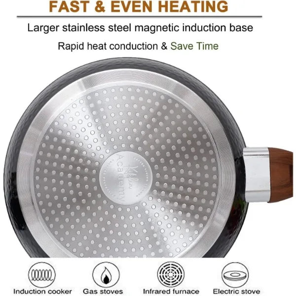 Designed with your health in mind, this cookware set is free from harmful chemicals such as lead and PFOA, ensuring you cook safely and healthily. The aluminum core heats quickly and distributes heat evenly, giving you precise control for perfect cooking results.