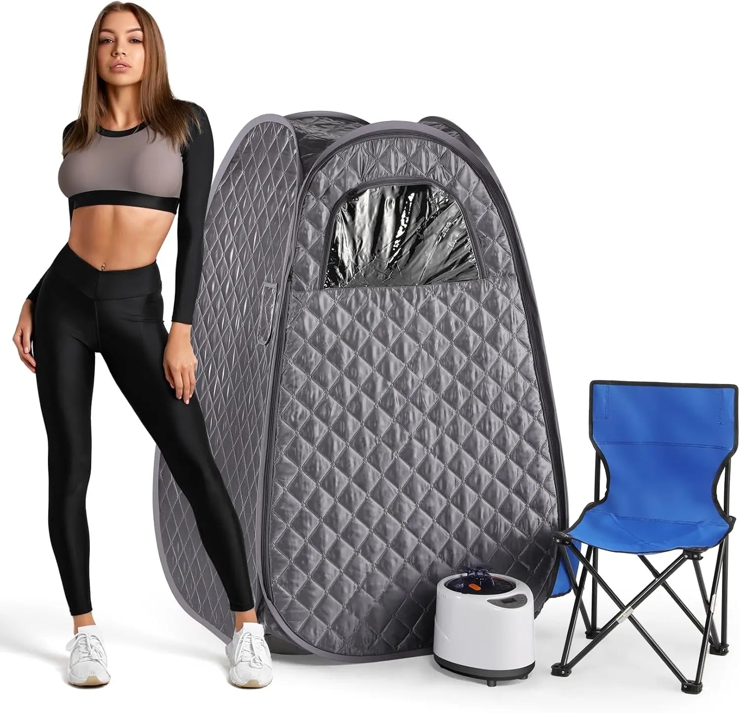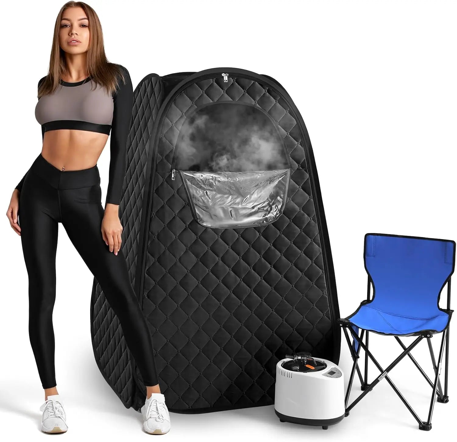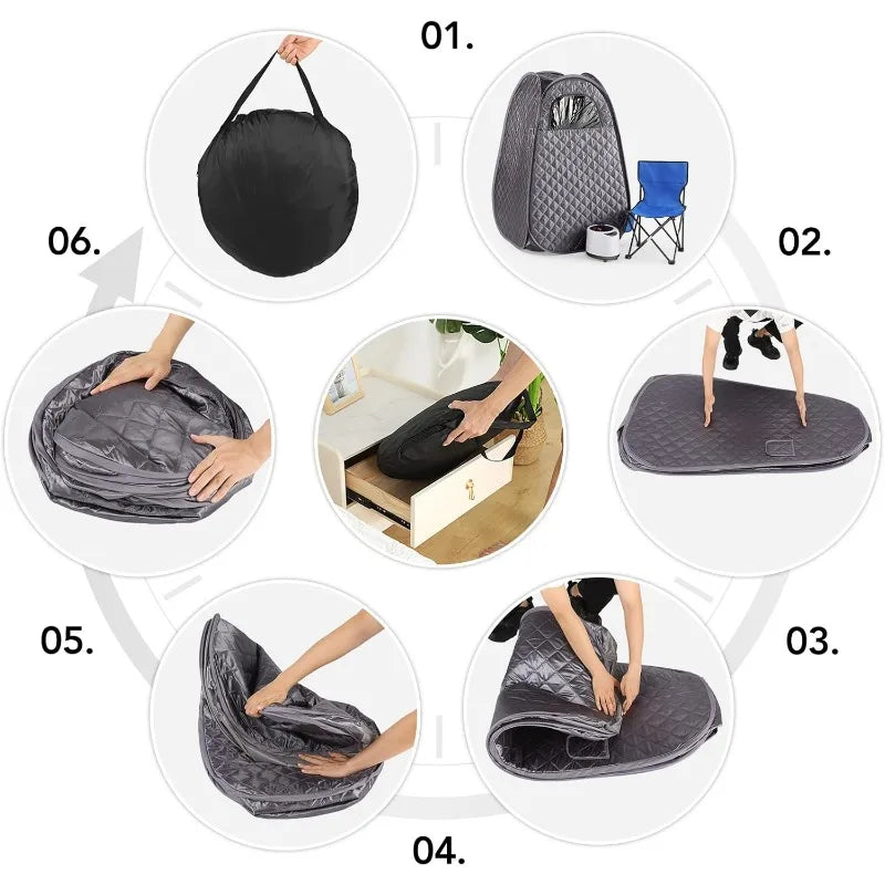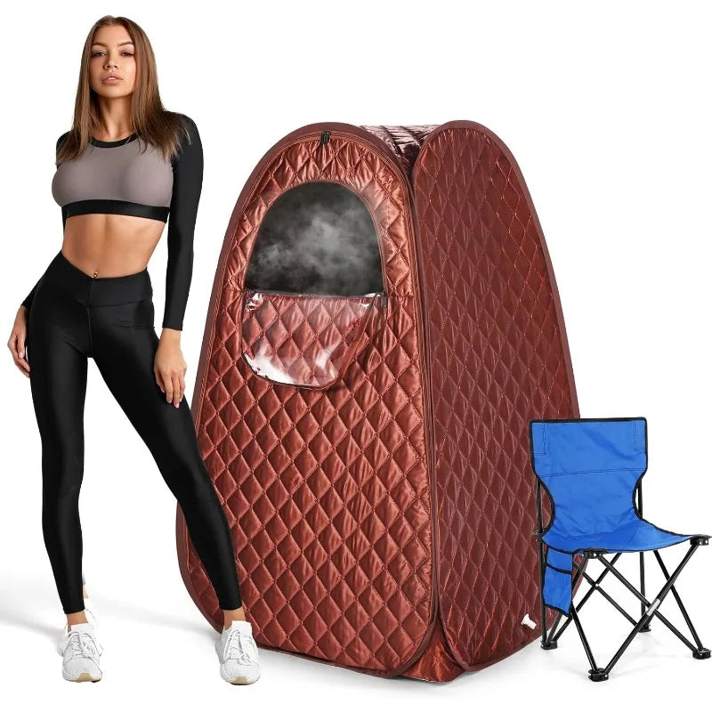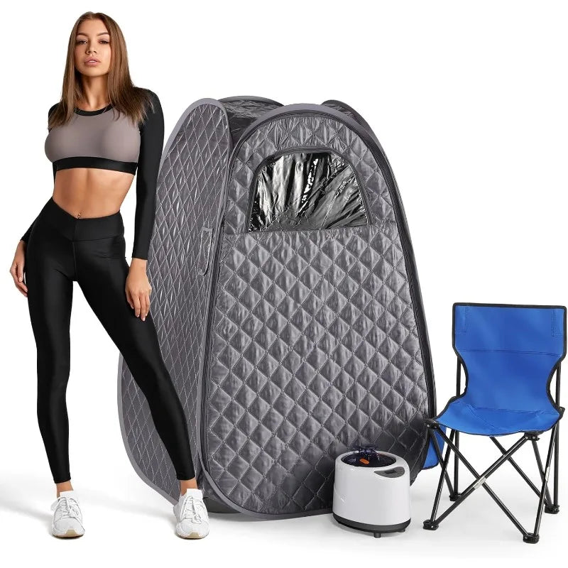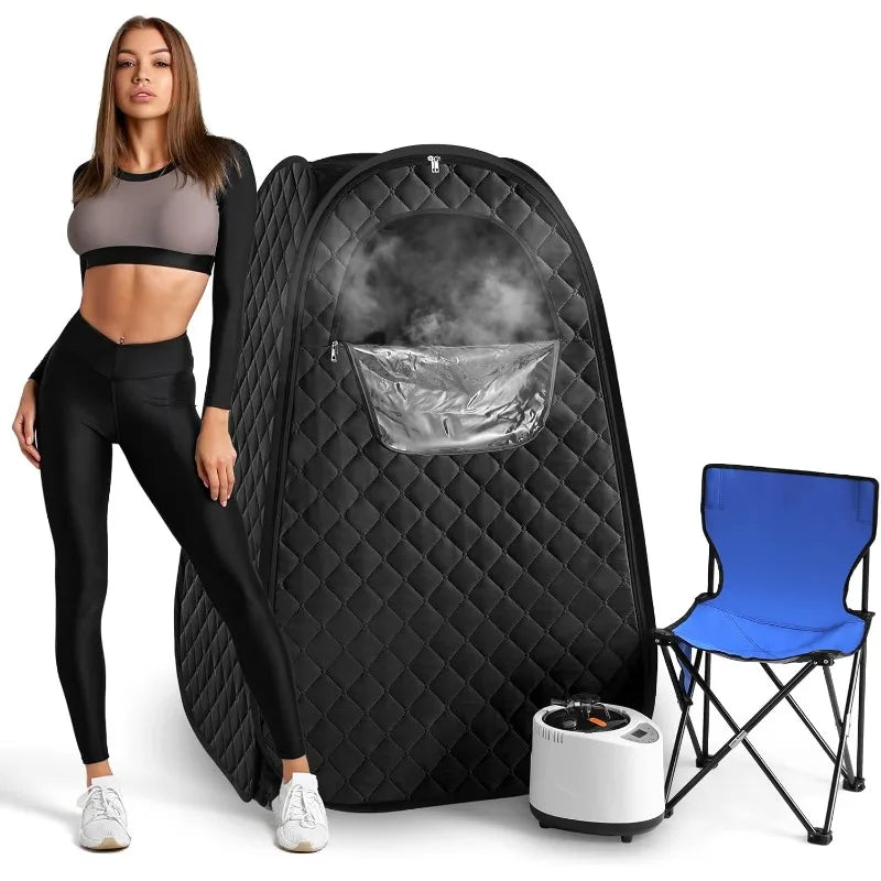 - [Portable and easy to assemble]: Portable and foldable steam sauna tent, easy to assemble and store. The sauna tent uses upgraded insulation fabrics to prevent heat loss. Our portable sauna room is equipped with a comfortable and foldable sauna chair. The chair load is 220 lb. It is convenient for you to use at any time
