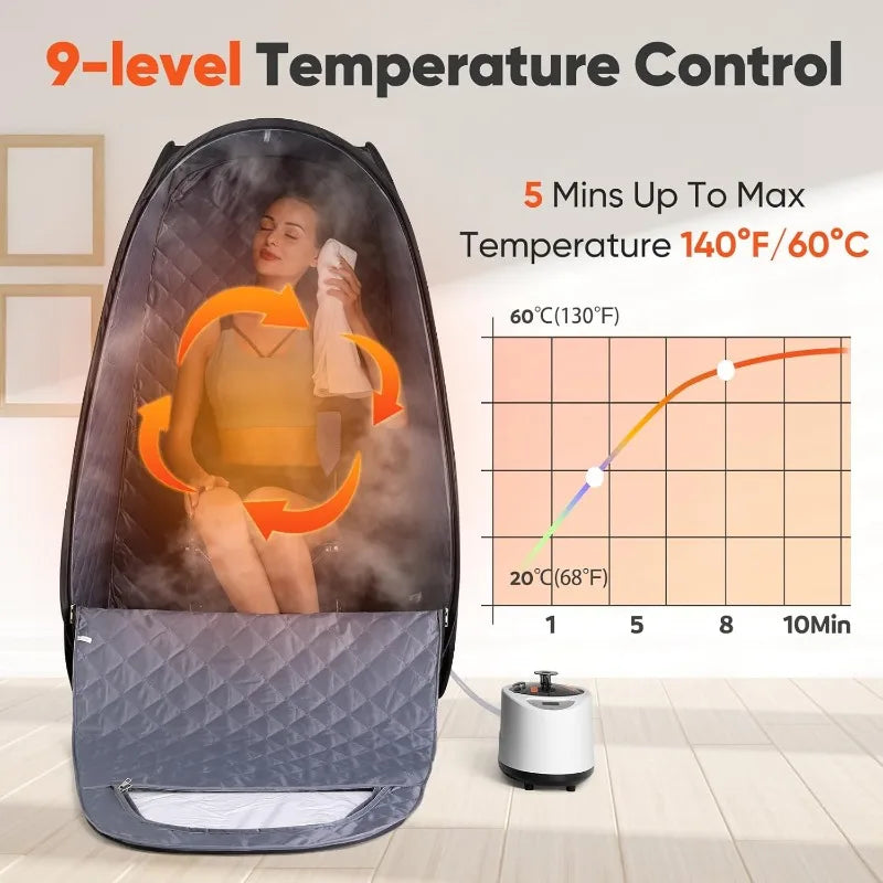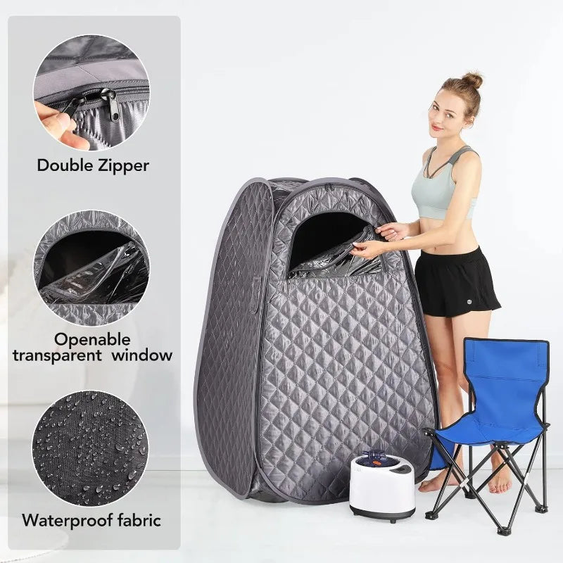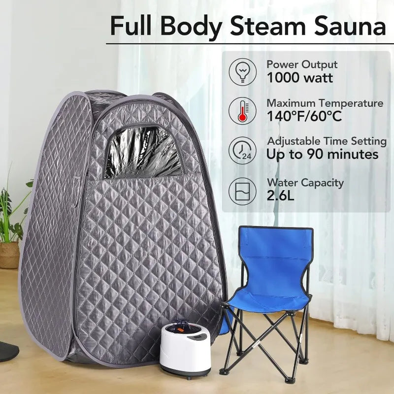 Single Person Sauna,-- Sauna Tent, Steamer 2.6L 1000W Steam Generator, 90 Minute Timer
