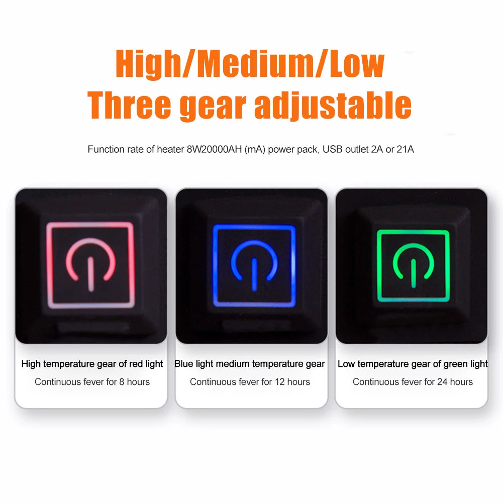 - Three Adjustable Heat Levels: Easily switch between high, medium, and low settings to find your perfect temperature, suitable for environments as cold as -10℃ to -20℃.